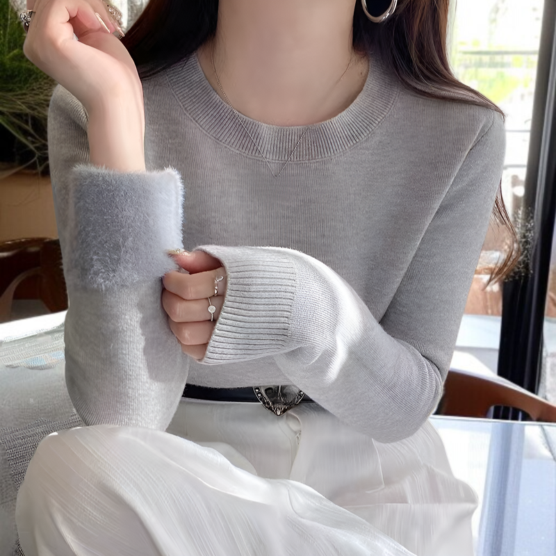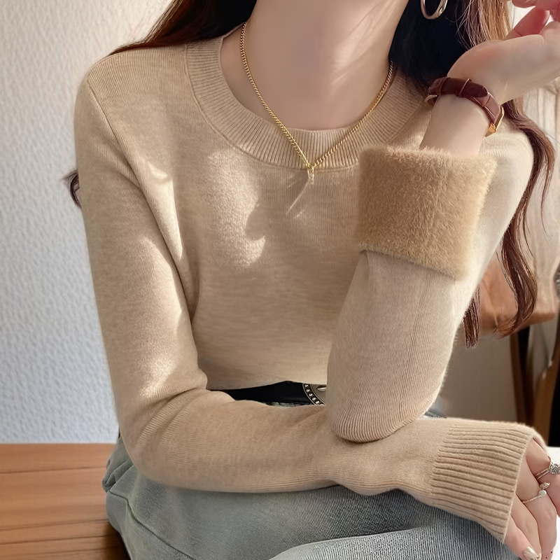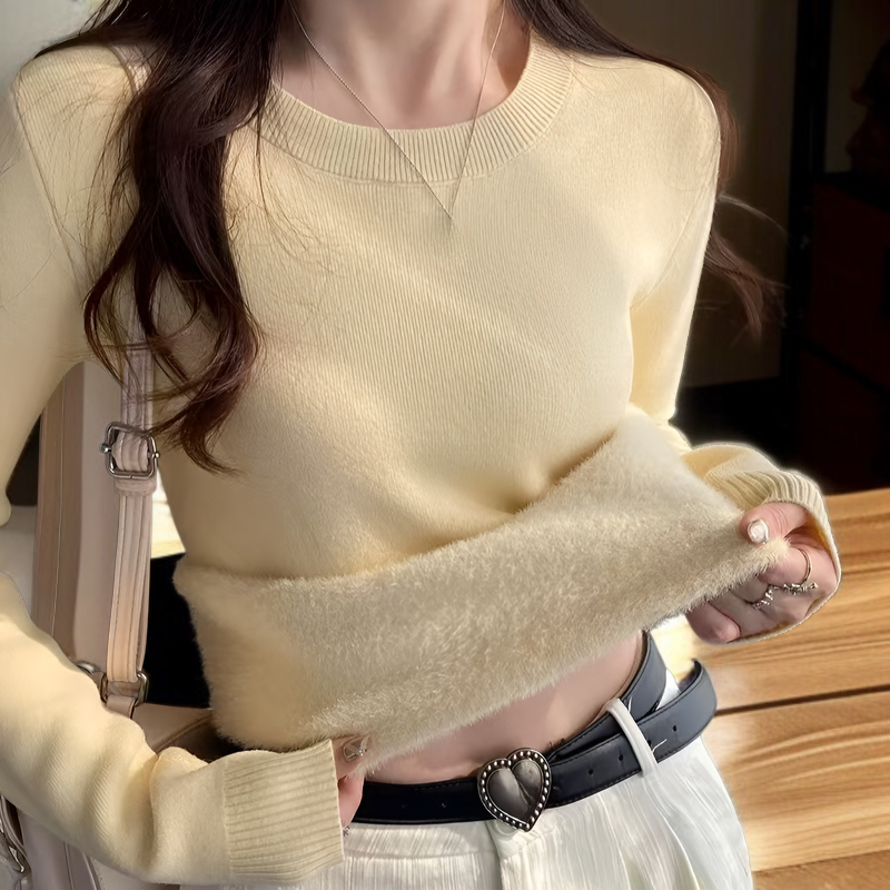2025年冬新作:フリース裏地、極暖セーター、厚手フリースクルーネックプルオーバー、暖かいニットウェア、ベースレイヤー、秋冬レディーストップス、寒い天候の解決策