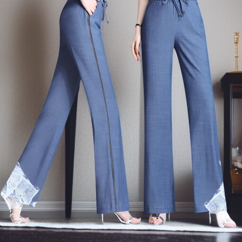 テンセルジーンズ 夏 レディース ハイウエスト ジーンズ 伸縮性 ソフト ジーンズ 伸縮性ウエスト ワイドレッグパンツ 中高年 プラスサイズ パンツ